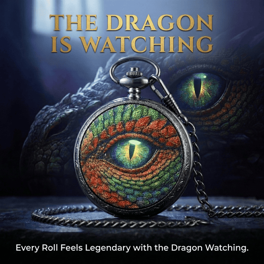 Ancient Crimson Dragon Eye Pocket Watch Dice Set